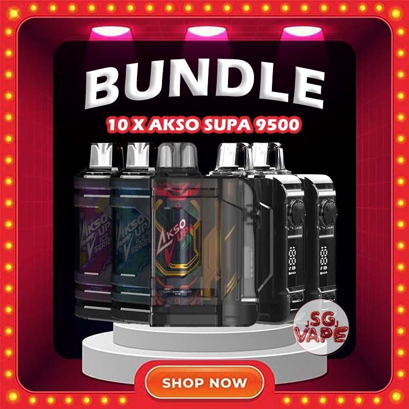 The AKSO SUPA DISPOSABLE has 9500 Puffs , available in our Vape Sg Shop Online Ready Stock and Get it now with us and same day delivery !
